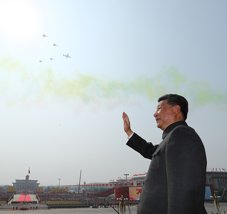 10月1日,慶祝中華人民共和國成立70周年大會在北京天安門廣場隆重舉行。這是中共中央總書記、國家主席、中央軍委主席習近平檢閱受閱部隊。 新華社記者 李濤 攝