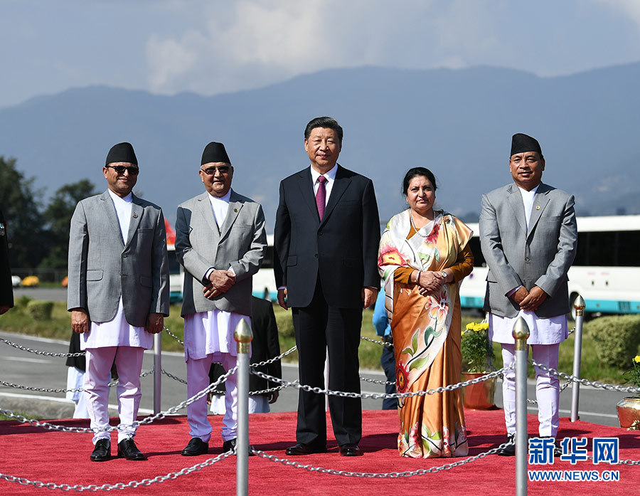 當(dāng)?shù)貢r(shí)間10月13日中午,國家主席習(xí)近平離開加德滿都啟程回國。尼泊爾總統(tǒng)班達(dá)里在機(jī)場為習(xí)近平舉行隆重歡送儀式。尼泊爾副總統(tǒng)普恩、總理奧利、聯(lián)邦議會(huì)聯(lián)邦院主席蒂米爾西納、所有內(nèi)閣成員、軍方高級(jí)將領(lǐng)參加。 新華社記者 謝環(huán)馳 攝