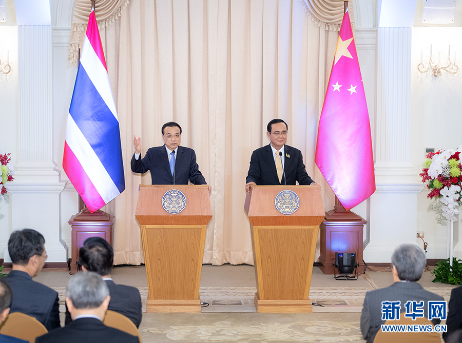 兩國總理積極評價中泰合作取得的新成果。李克強表示,泰國是中國平等、互利的好朋友和好伙伴。雙方互補優(yōu)勢強、合作潛力大。中泰兩國的合作,正如曼谷湄南河上航行的長尾船,同舟共濟,快速前進,行穩(wěn)致遠。我們愿同泰方共同努力,深化睦鄰友好關(guān)系,合作應(yīng)對挑戰(zhàn),實現(xiàn)互利共贏。