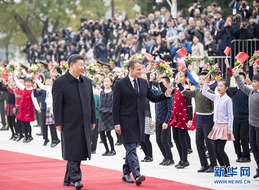 11月6日,國家主席習(xí)近平在北京人民大會(huì)堂同法國總統(tǒng)馬克龍會(huì)談。這是會(huì)談前,習(xí)近平在人民大會(huì)堂東門外廣場為馬克龍舉行歡迎儀式。新華社記者 燕雁 攝