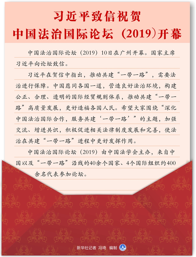 圖表:習(xí)近平致信祝賀中國法治國際論壇(2019)開幕 新華社記者 馮琦 編制。
