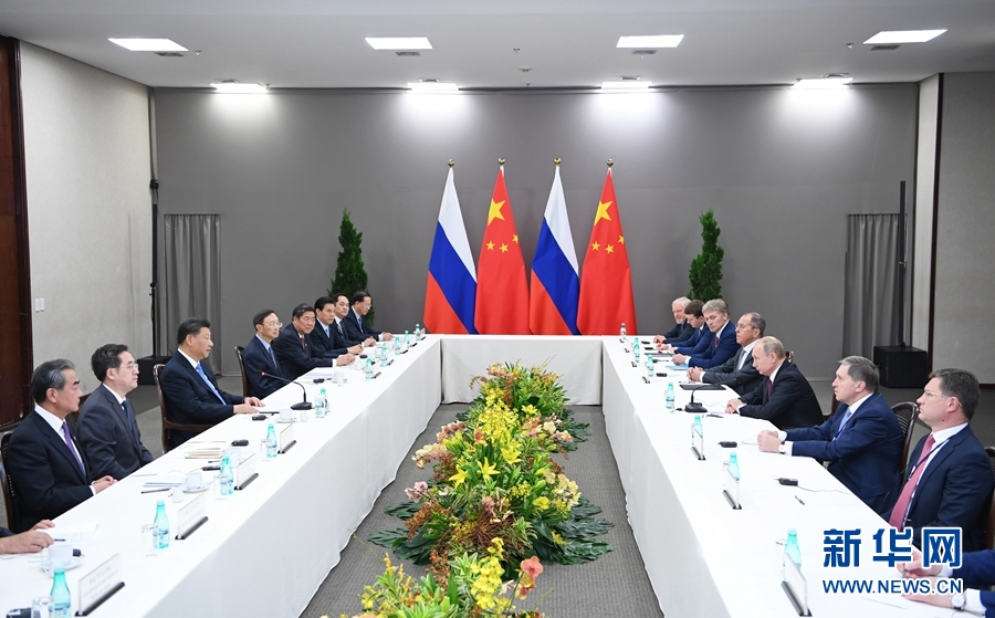 當(dāng)?shù)貢r(shí)間11月13日,國(guó)家主席習(xí)近平在巴西利亞會(huì)見(jiàn)俄羅斯總統(tǒng)普京。 新華社記者 張領(lǐng) 攝