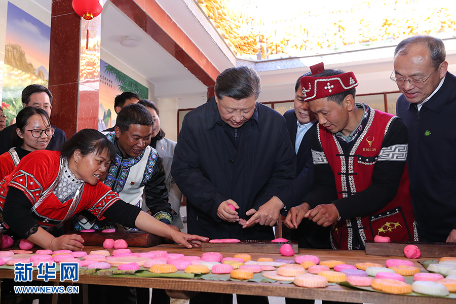 1月19日至21日,中共中央總書記、國家主席、中央軍委主席習近平來到云南,看望慰問各族干部群眾,向全國人民致以新春祝福。這是19日下午,習近平在騰沖市清水鄉(xiāng)三家村中寨司莫拉佤族村,同村民李發(fā)順一家制作當?shù)毓?jié)日傳統(tǒng)食品大米粑粑。 新華社記者 鞠鵬 攝