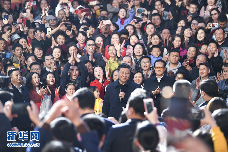 1月19日至21日,中共中央總書記、國家主席、中央軍委主席習近平來到云南,看望慰問各族干部群眾,向全國人民致以新春祝福。這是20日下午,習近平在昆明國際會展中心展廳外廣場上,向云南群眾、向全國各族人民、向港澳臺同胞和海外僑胞致以新春祝福。 新華社記者 燕雁 攝