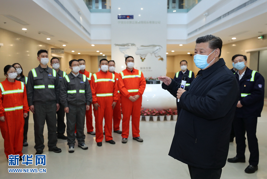 3月29日,中共中央總書記、國家主席、中央軍委主席習(xí)近平在浙江考察調(diào)研。這是習(xí)近平在寧波舟山港穿山港區(qū)碼頭了解港口復(fù)工復(fù)產(chǎn)情況。 新華社記者 鞠鵬 攝