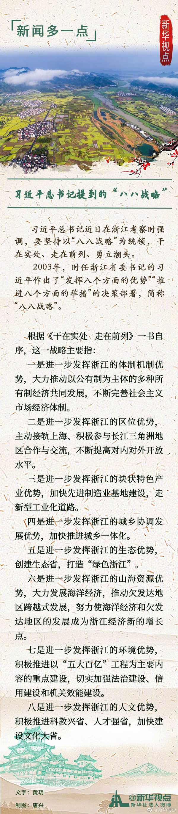 2003年,時任浙江省委書記的習(xí)近平作出了“發(fā)揮八個方面的優(yōu)勢”“推進(jìn)八個方面的舉措”的決策部署,簡稱“八八戰(zhàn)略”。