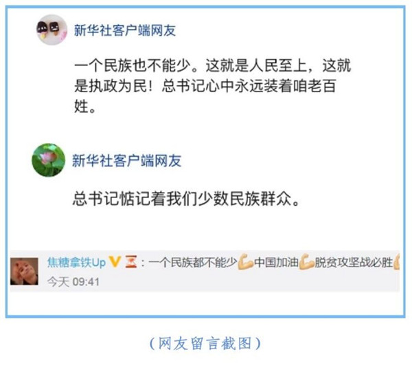 總書記還說:“各民族團結(jié)攜手,共同邁進全面小康,體現(xiàn)了中華民族優(yōu)良傳統(tǒng),體現(xiàn)了中國特色社會主義制度的顯著優(yōu)勢?!?/strong>對此,網(wǎng)民認為既貼心又有分量。