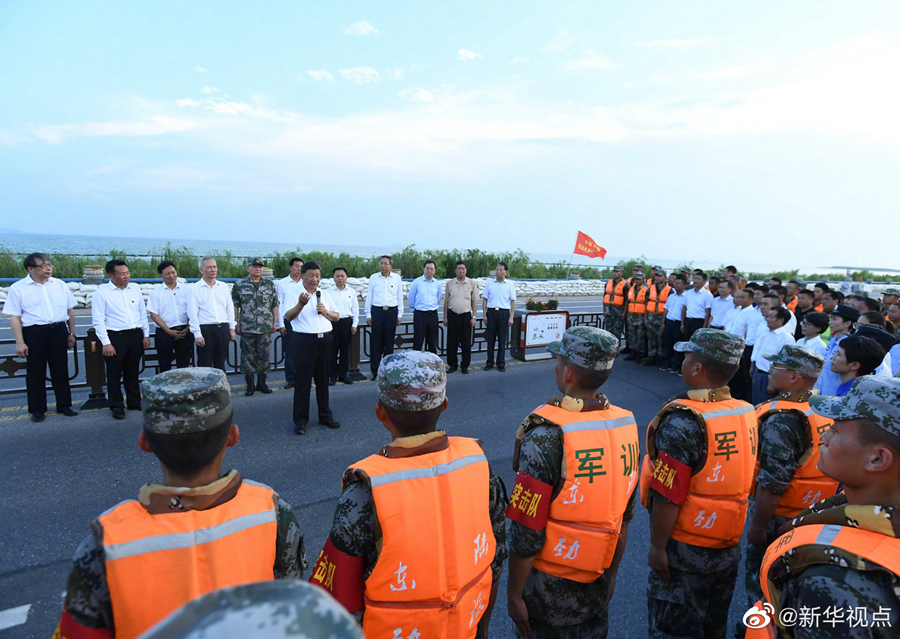 19日下午,正在安徽考察調研的習近平總書記來到合肥市肥東縣十八聯(lián)圩生態(tài)濕地蓄洪區(qū)巢湖大堤羅家疃段,察看巢湖水勢水情。他強調,洪水退后,要防止蓄洪區(qū)內出現(xiàn)水退人進的現(xiàn)象。我們要實現(xiàn)人與自然和諧相處,就不能同自然爭奪發(fā)展空間。八百里巢湖要用好,更要保護好、治理好,使之成為合肥這個城市最好的名片。(文字記者:張曉松 攝影記者:鞠鵬 王曄 燕雁)