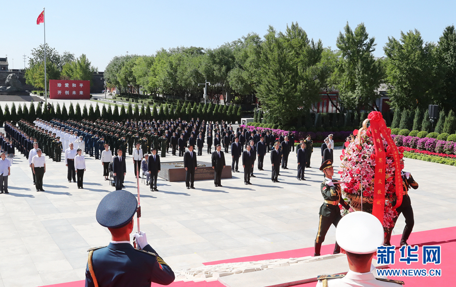 新華社北京9月3日電(記者張曉松、朱基釵)銘記歷史緬懷先烈,珍愛(ài)和平開(kāi)創(chuàng)未來(lái)。9月3日上午,紀(jì)念中國(guó)人民抗日戰(zhàn)爭(zhēng)暨世界反法西斯戰(zhàn)爭(zhēng)勝利75周年向抗戰(zhàn)烈士敬獻(xiàn)花籃儀式在中國(guó)人民抗日戰(zhàn)爭(zhēng)紀(jì)念館舉行。黨和國(guó)家領(lǐng)導(dǎo)人習(xí)近平、李克強(qiáng)、栗戰(zhàn)書(shū)、汪洋、王滬寧、趙樂(lè)際、韓正、王岐山,同各界代表一起出席儀式。