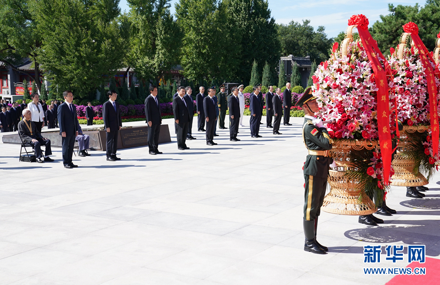 9月3日上午,習(xí)近平、李克強(qiáng)、栗戰(zhàn)書(shū)、汪洋、王滬寧、趙樂(lè)際、韓正、王岐山等黨和國(guó)家領(lǐng)導(dǎo)人來(lái)到中國(guó)人民抗日戰(zhàn)爭(zhēng)紀(jì)念館,出席紀(jì)念中國(guó)人民抗日戰(zhàn)爭(zhēng)暨世界反法西斯戰(zhàn)爭(zhēng)勝利75周年向抗戰(zhàn)烈士敬獻(xiàn)花籃儀式。 新華社記者 丁林 攝