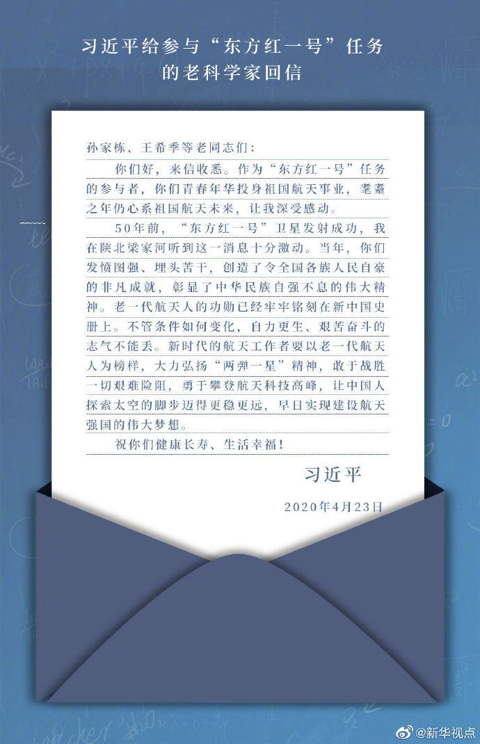 “敢于戰(zhàn)勝一切艱難險阻”——今年4月,習近平給參與“東方紅一號”任務(wù)的老科學家回信時這樣寫道。