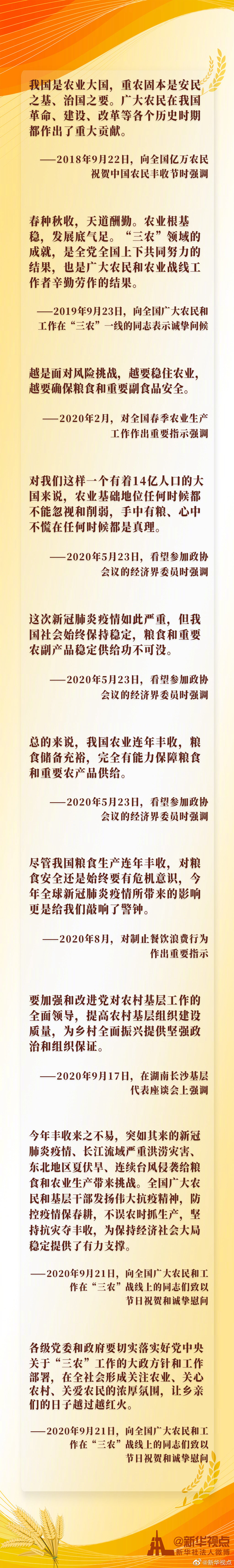 春種秋收,天道酬勤。今天是第三個(gè)中國農(nóng)民豐收節(jié),一起重溫習(xí)近平總書記關(guān)注農(nóng)業(yè),關(guān)心農(nóng)村,關(guān)愛農(nóng)民的金句。