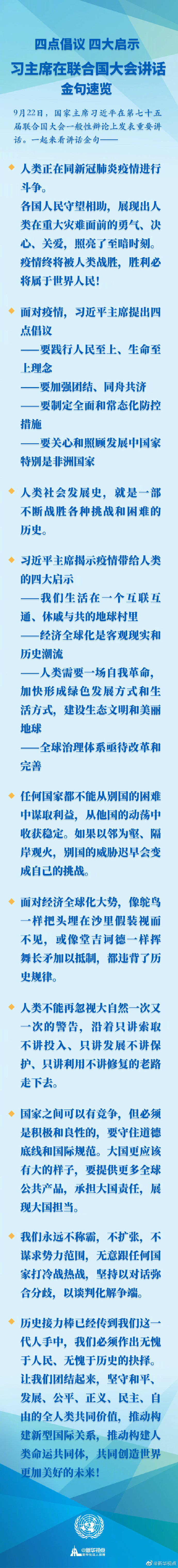 四點倡議 四大啟示 習主席在聯(lián)合國大會講話金句速覽