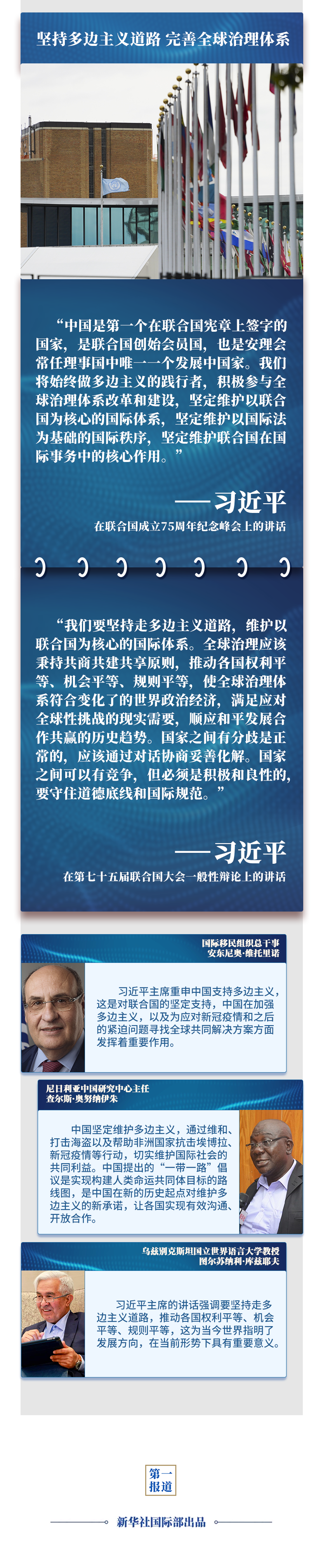 在聯(lián)合國(guó)成立75周年之際,習(xí)主席通過(guò)視頻方式,在聯(lián)合國(guó)這一多邊外交舞臺(tái)闡述關(guān)于國(guó)際秩序和人類(lèi)前途命運(yùn)的中國(guó)主張,為國(guó)際社會(huì)應(yīng)對(duì)全球性挑戰(zhàn)、推動(dòng)共同發(fā)展指明方向,為世界各國(guó)攜手構(gòu)建人類(lèi)命運(yùn)共同體、共創(chuàng)更加美好的未來(lái)注入信心和動(dòng)力——