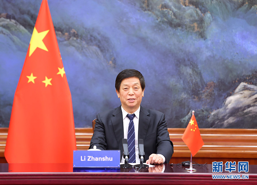 10月27日,全國(guó)人大常委會(huì)委員長(zhǎng)栗戰(zhàn)書(shū)在北京人民大會(huì)堂出席第六屆金磚國(guó)家議會(huì)論壇視頻會(huì)議并發(fā)表講話。 新華社記者 龐興雷 攝