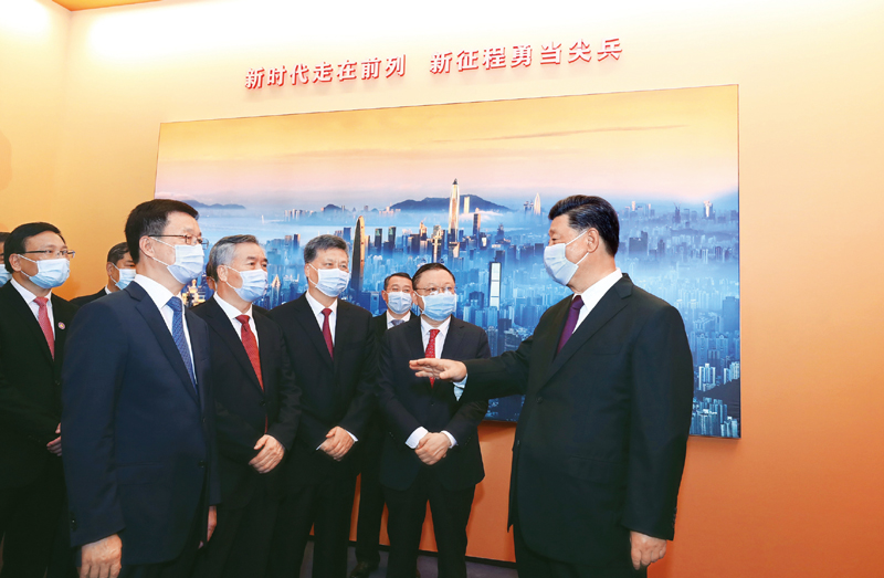 2020年10月14日,深圳經(jīng)濟(jì)特區(qū)建立40周年慶祝大會(huì)在廣東省深圳市隆重舉行。中共中央總書記、國家主席、中央軍委主席習(xí)近平在會(huì)上發(fā)表重要講話。這是當(dāng)天上午,習(xí)近平等參觀“從先行先試到先行示范——慶祝深圳經(jīng)濟(jì)特區(qū)建立40周年展覽”。 新華社記者 鞠鵬/攝