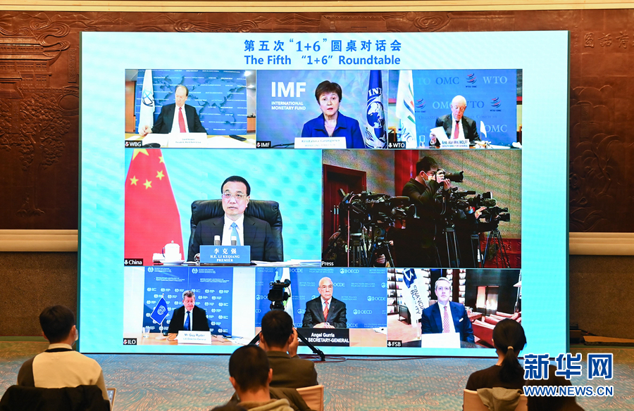 新華社北京11月24日電(記者鄭明達(dá))國務(wù)院總理李克強(qiáng)11月24日晚在釣魚臺國賓館同世界銀行行長馬爾帕斯、國際貨幣基金組織總裁格奧爾基耶娃、世界貿(mào)易組織副總干事沃爾夫、國際勞工組織總干事賴德、經(jīng)濟(jì)合作與發(fā)展組織秘書長古里亞和金融穩(wěn)定理事會主席夸爾斯舉行第五次“1+6”圓桌對話會后共同會見了記者。