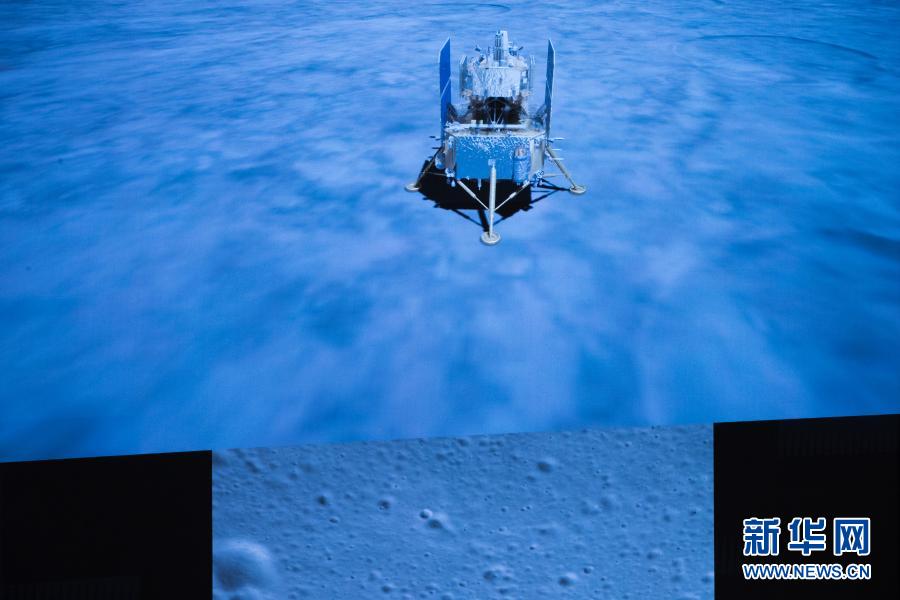 12月1日23時(shí)11分,嫦娥五號(hào)探測(cè)器成功著陸在月球正面西經(jīng)51.8度、北緯43.1度附近的預(yù)選著陸區(qū),并傳回著陸影像圖。這是在北京航天飛行控制中心拍攝的嫦娥五號(hào)探測(cè)器落月瞬間。新華社記者 金立旺 攝