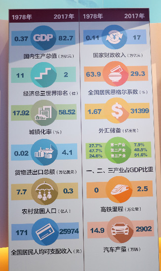 這是一張經濟指標對比圖,詳細展示了1978年同2017年各項重要經濟指標對比:
