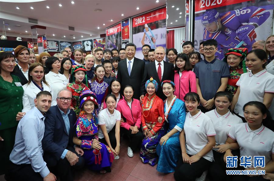 2018年9月12日,國家主席習(xí)近平在符拉迪沃斯托克同俄羅斯總統(tǒng)普京一起訪問“海洋”全俄兒童中心。這是習(xí)近平和普京同中俄青少年代表及中心教職工代表合影。 新華社記者鞠鵬攝