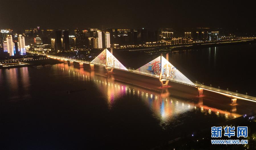 4月8日零時(shí)起,武漢市正式解除離漢離鄂通道管控措施,全市景觀照明開啟(無人機(jī)照片)。新華社記者 程敏 攝