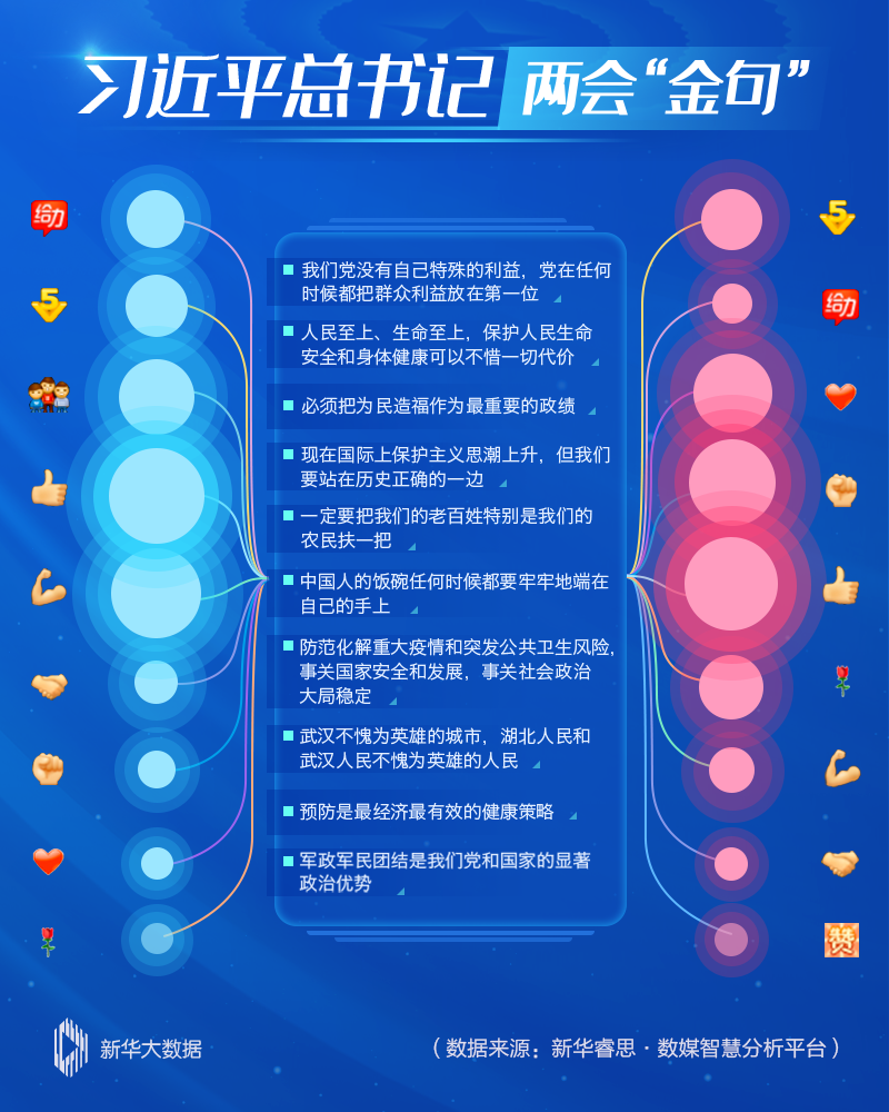 總書記飽含深情的話語一經(jīng)發(fā)出,立刻通過網(wǎng)絡(luò)傳導(dǎo)觸及每一個網(wǎng)民的情感神經(jīng),引發(fā)大量情感共鳴。兩會期間,新華睿思持續(xù)追蹤相關(guān)數(shù)據(jù),并對網(wǎng)民的情緒變化和留言進(jìn)行集納分析。