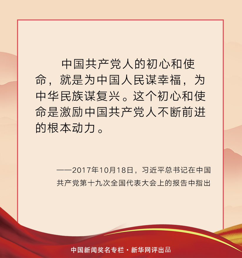 穿越革命、建設(shè)、改革的激流,中國共產(chǎn)黨為中國人民謀幸福、為中華民族謀復(fù)興的初心使命一以貫之。從石庫門到天安門,從興業(yè)路到復(fù)興路,從站起來、富起來到強起來,中國共產(chǎn)黨緊緊依靠人民,跨過一道又一道溝坎,取得一個又一個勝利,為中華民族建樹了彪炳史冊的豐功偉績。99年波瀾壯闊的奮斗前行,中國共產(chǎn)黨初心不改、使命不移,團結(jié)帶領(lǐng)人民把貧窮落后的舊中國變成日益走向繁榮富強的新中國,所付出的一切努力、進行的一切斗爭、作出的一切犧牲,都是為了人民幸福和民族復(fù)興。