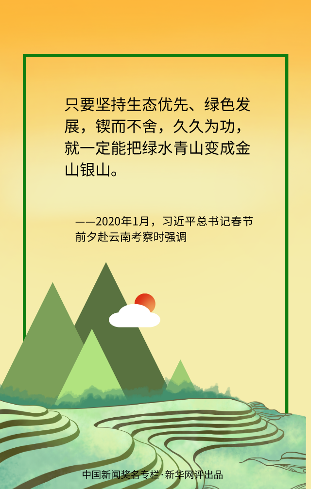 綠色發(fā)展道阻且長(zhǎng),但行則將至。生態(tài)治理、實(shí)現(xiàn)人與自然和諧共生仍有不少“硬骨頭”要啃。我們既要有除弊治病的決心,又要有遵循規(guī)律辦事的自覺,既要有只爭(zhēng)朝夕的精神,更要有持之以恒的堅(jiān)守,以綿綿之力久久為功,腳踏實(shí)地地推進(jìn)美麗中國(guó)建設(shè),一處處“詩意棲居”的綠水青山必將變成一座座金山銀山。(文字:徐可 海報(bào):滕華)