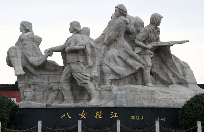 她們是東北抗日聯(lián)軍第5軍婦女團(tuán)的政治指導(dǎo)員冷云,班長(zhǎng)胡秀芝、楊貴珍,戰(zhàn)士郭桂琴、黃桂清、王惠民、李鳳善和被服廠廠長(zhǎng)安順福。1938年10月,該部在牡丹江地區(qū)烏斯渾河渡口與日偽軍千余人遭遇。已行至河邊準(zhǔn)備渡河的婦女團(tuán)8名成員,為掩護(hù)大部隊(duì)突圍,毅然放棄渡河,在冷云率領(lǐng)下,分成3個(gè)戰(zhàn)斗小組,與日偽軍展開(kāi)激戰(zhàn)。她們主動(dòng)吸引日偽軍火力,使部隊(duì)主力得以迅速擺脫敵人的攻擊,但她們卻被敵人圍困于河邊。在背水作戰(zhàn)至彈盡的情況下,面對(duì)日偽軍逼降,女戰(zhàn)士們誓死不屈。她們毀掉槍支,挽臂涉入烏斯渾河,高唱著《國(guó)際歌》,集體沉江,壯烈殉國(guó)。犧牲時(shí),她們年齡最大的冷云23歲,最小的王惠民才13歲。