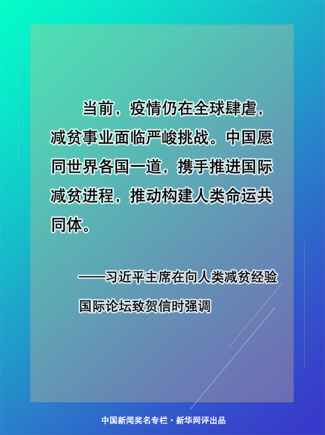 志行萬里者,不中道而輟足。當(dāng)前,中國取得了脫貧攻堅的重大勝利,將繼續(xù)鞏固和拓展成果,扎實推進(jìn)共同富裕,不斷提升民生福祉水平,同時將繼續(xù)助力全球減貧工作。國際社會只要把發(fā)展作為解決貧困的根本途徑,勠力同心、攜手共進(jìn),一定能為共建一個沒有貧困、共同發(fā)展的人類命運共同體注入更多信心力量。(文字:馬若虎 海報:張倩)