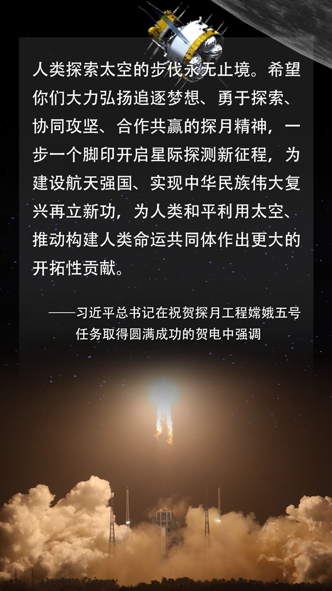 習近平代表黨中央、國務(wù)院和中央軍委祝賀探月工程嫦娥五號任務(wù)取得圓滿成功的賀電