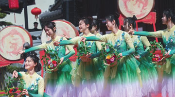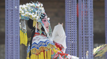 4月2日,工人在山海关中国长城博物馆(暂定名)工地上作业。