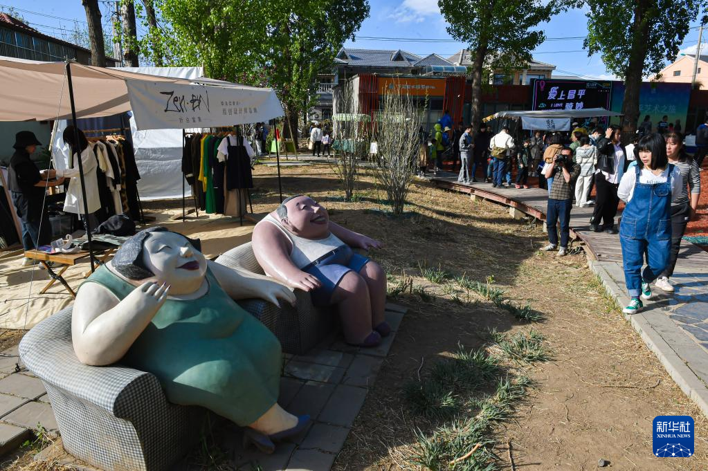 这是4月15日拍摄的“2023下苑艺术生活季”活动现场的一个雕塑作品。
