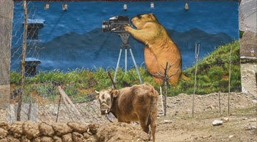 4月20日,观众在展览上观看木乃伊半身棺盖。