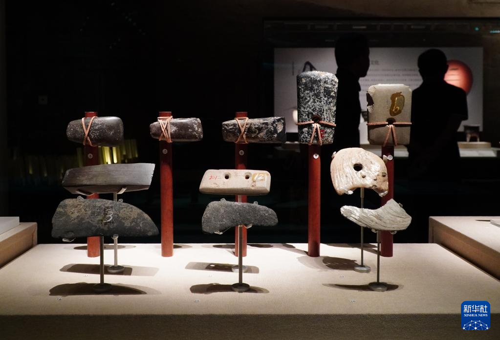 5月15日,在山东省青州博物馆新馆,龙山文化石器正在进行展出。