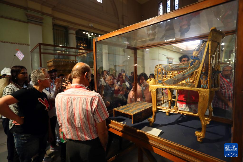5月16日,人们在位于埃及首都开罗的埃及博物馆参观古埃及法老图坦卡蒙的木制镀金宝座。