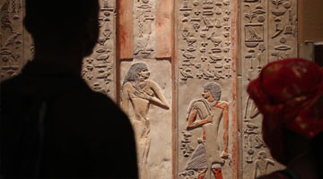 5月18日,游客在西夏博物馆欣赏展出的西夏文物。
