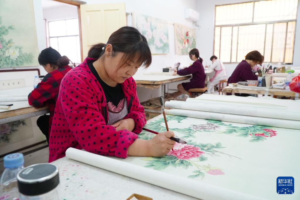山东巨野:工笔牡丹画产业助力乡村振兴-新华网
