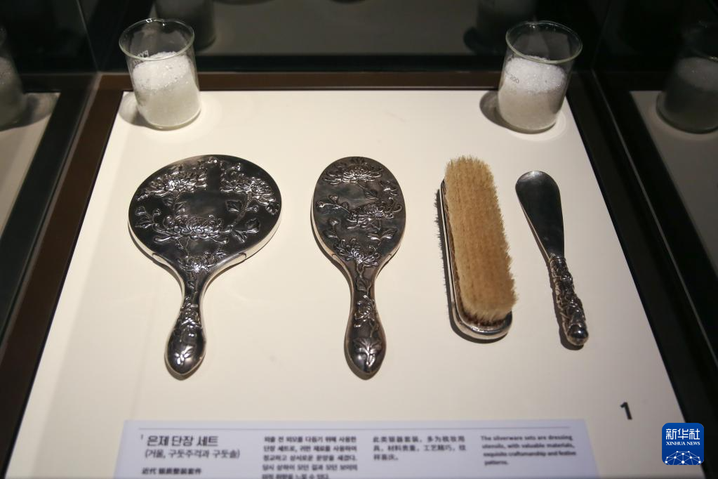 这是6月1日在韩国首尔历史博物馆拍摄的“海上银珠·璀璨华光——上海市历史博物馆馆藏银器展”展品。新华社记者 王益亮 摄