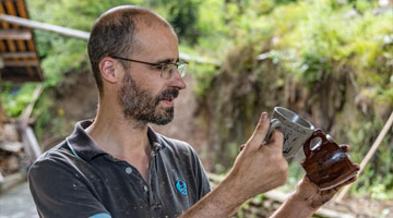 6月9日,参观者在“鄂尔多斯青铜器文物精品展”拍摄青铜兵器。