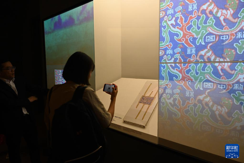 6月16日,观众参观“五星出东方利中国”锦护膊(复制品)。