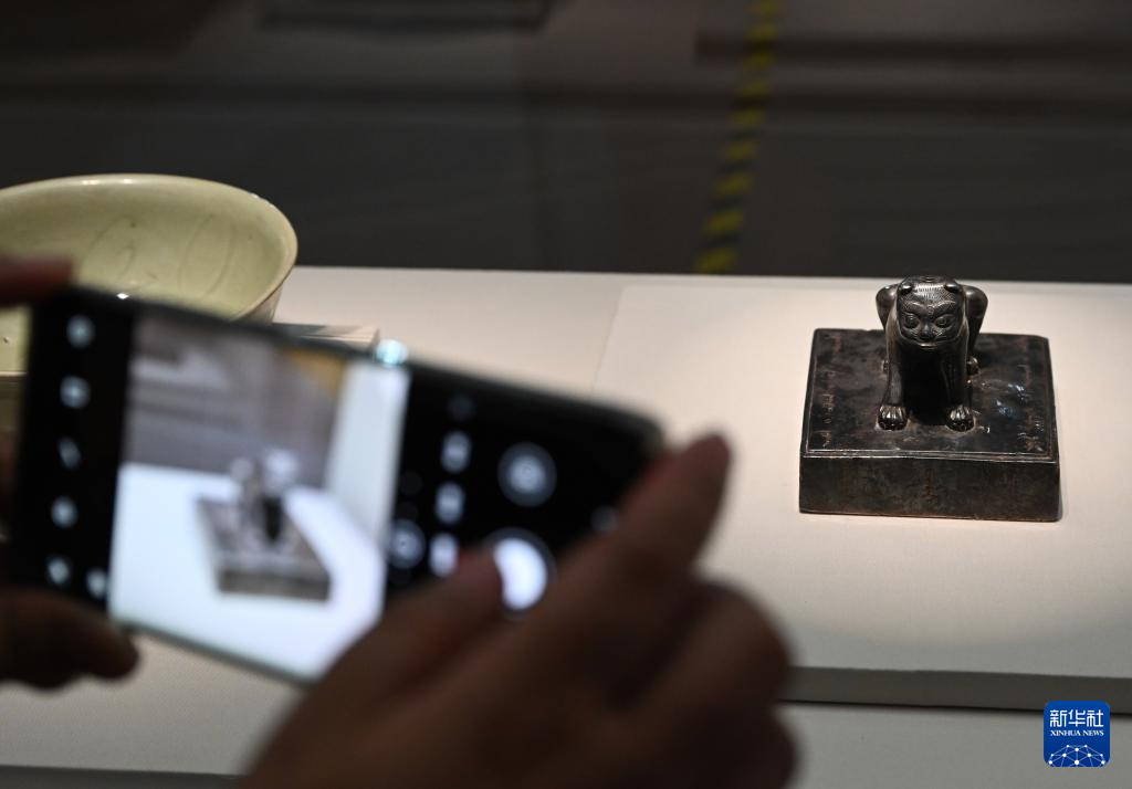 6月16日,观众拍摄展出的土尔扈特银印。