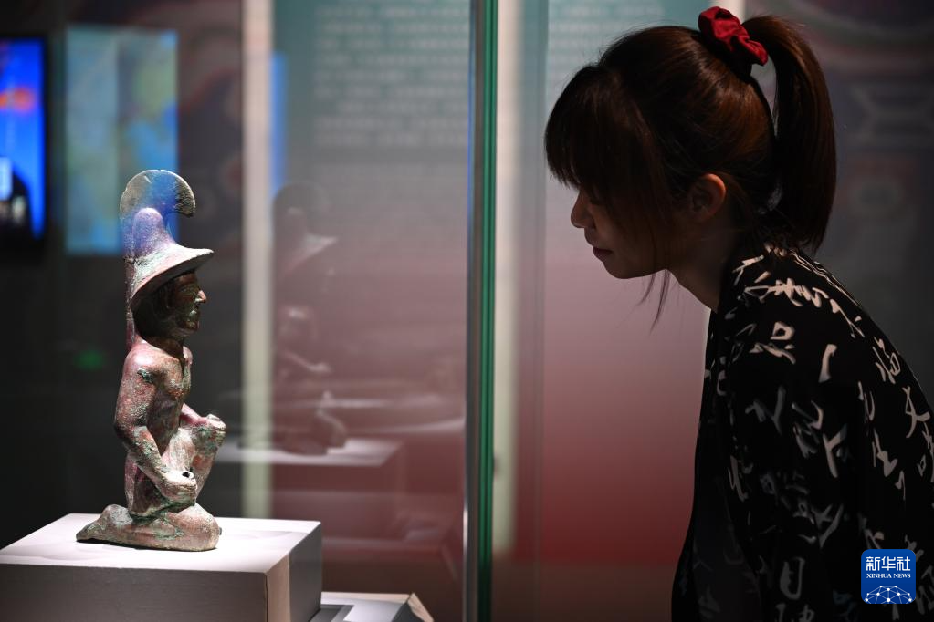 6月16日,观众参观铜武士俑。