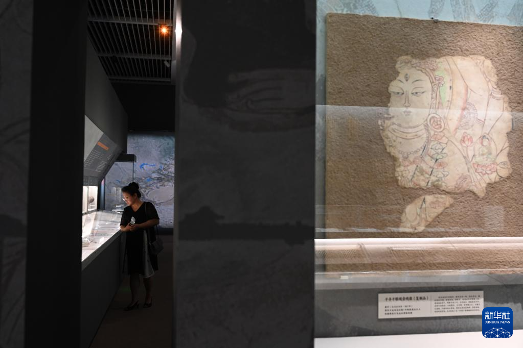 这是展出的彩绘泥塑头俑(6月16日摄)。
