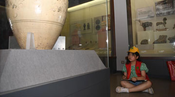 6月26日,游人在河南省安阳市殷墟博物馆内参观。