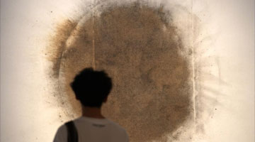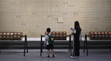 7月9日,广西南宁,市民参观在南宁国际会展中心展出的“会动的《清明上河图》展览”。此次展览以北宋画家张择端所绘《清明上河图》为蓝本,通过巨幕荧屏将原作放大数百倍,复原上千个画中人物,再现北宋时期的繁华盛景。
