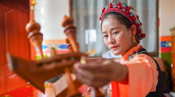 在位于山西省太原市万柏林区的工作室内,王帅栋向女儿传授瓦楞纸裁剪技巧(8月4日摄)。