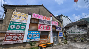 艺术节现场展示的手工作品《青山绿水》(8月15日摄)。该作品由设计师和海派钩针编结非遗传承人共同创作,呼吁人们保护山河草木。