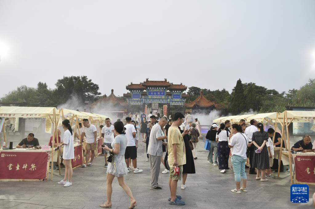 暑期以来,位于河南省开封市的中国翰园碑林景区利用周末举办“书画肆集”特色文化活动,邀请书画家现场挥毫泼墨,独特的文化大餐吸引市民和游客前来驻足观赏、游园休闲。