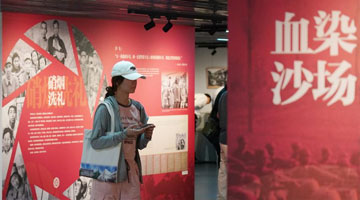 9月7日,媒体记者在展览上观看一款民国时期西式长款女上衣。新华社记者 陈铎 摄